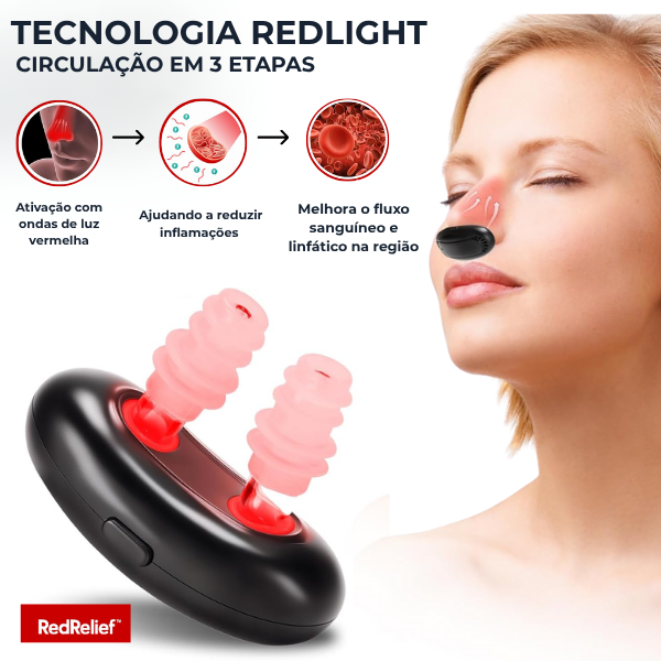 RedRelief™ é um dispositivo de luz vermelha (fotobiomodulação) que atua direto na raiz do problema: reduz inflamações, melhora a circulação local e ajuda a regenerar a mucosa nasal.